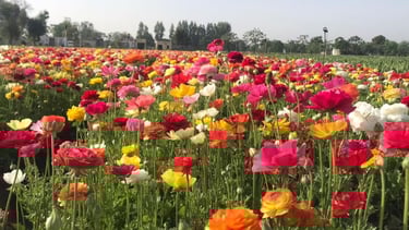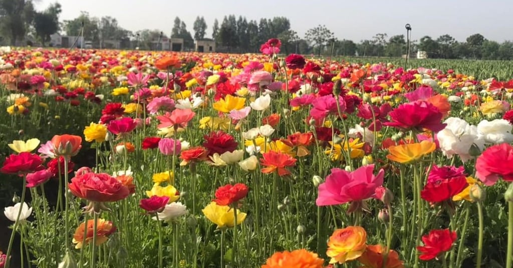 Flowering usually starts from 4 months of sowing. The field will fill with flowers, making leaves partially visible from the top. The flowers look like buttercups. For bulb production, the tops of the flowers need to be cut for high quality bulbs. For cutflowers, the flower stalk needs to be cut 2-3 inches from the bottom